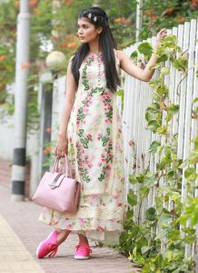 বিভিন্ন রঙের সুতা ও ছাপা নকশায় সাজানো হয়েছে সাদা মসলিনের কামিজটিকে। ডাবল লেয়ার দেওয়া ইয়কটি নজর কাড়ে। পেছনে ফিতা দিয়ে ফ্রকের স্টাইলে বাঁধা। জমকালো এই পোশাকটির সঙ্গে পালাজ্জোও আছে। পায়ে গোলাপি রঙের জুতা। ফিউশনধর্মী এই লুকে আরও ভিন্নতা এনেছে চুলে আটকানো ফুল নকশার কাঁটাগুলো। পোশাকের সঙ্গে জুতা পরা নিয়ে রোজা বলেন, ‘আমার অক্সফোর্ড শু খুব পছন্দ। আনুষ্ঠানিক, জিনস, ড্রেস স্টাইলের পোশাকের সঙ্গে আমি কনভার্স, কেডস বা শু পরে ফেলি।’
